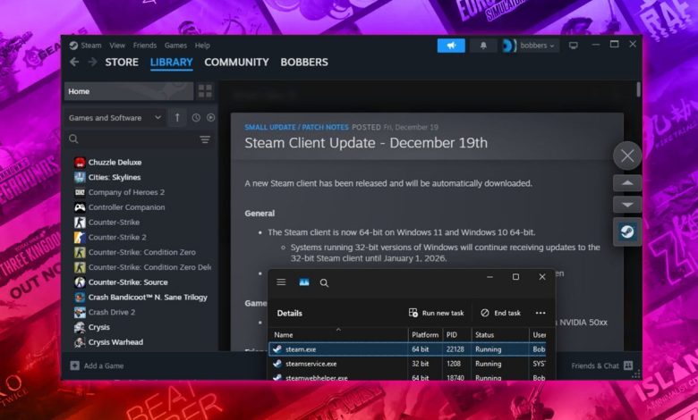 پشتیبانی از نسخه ۳۲ بیتی کلاینت استیم به زودی به پایان میرسد